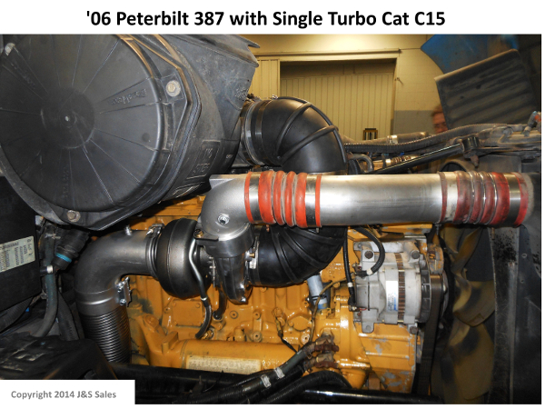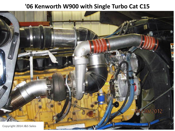 “I have an ’06 Freightliner Columbia with a Cat Acert 435 hp engine with a 10 speed transmission. I recently installed one of the J&S; single turbo kits myself. The kit is very simple to install if you are mechanically inclined. I also purchased the optional ARP studs and stainless steel spacers for the exhaust manifold and would highly recommend them.